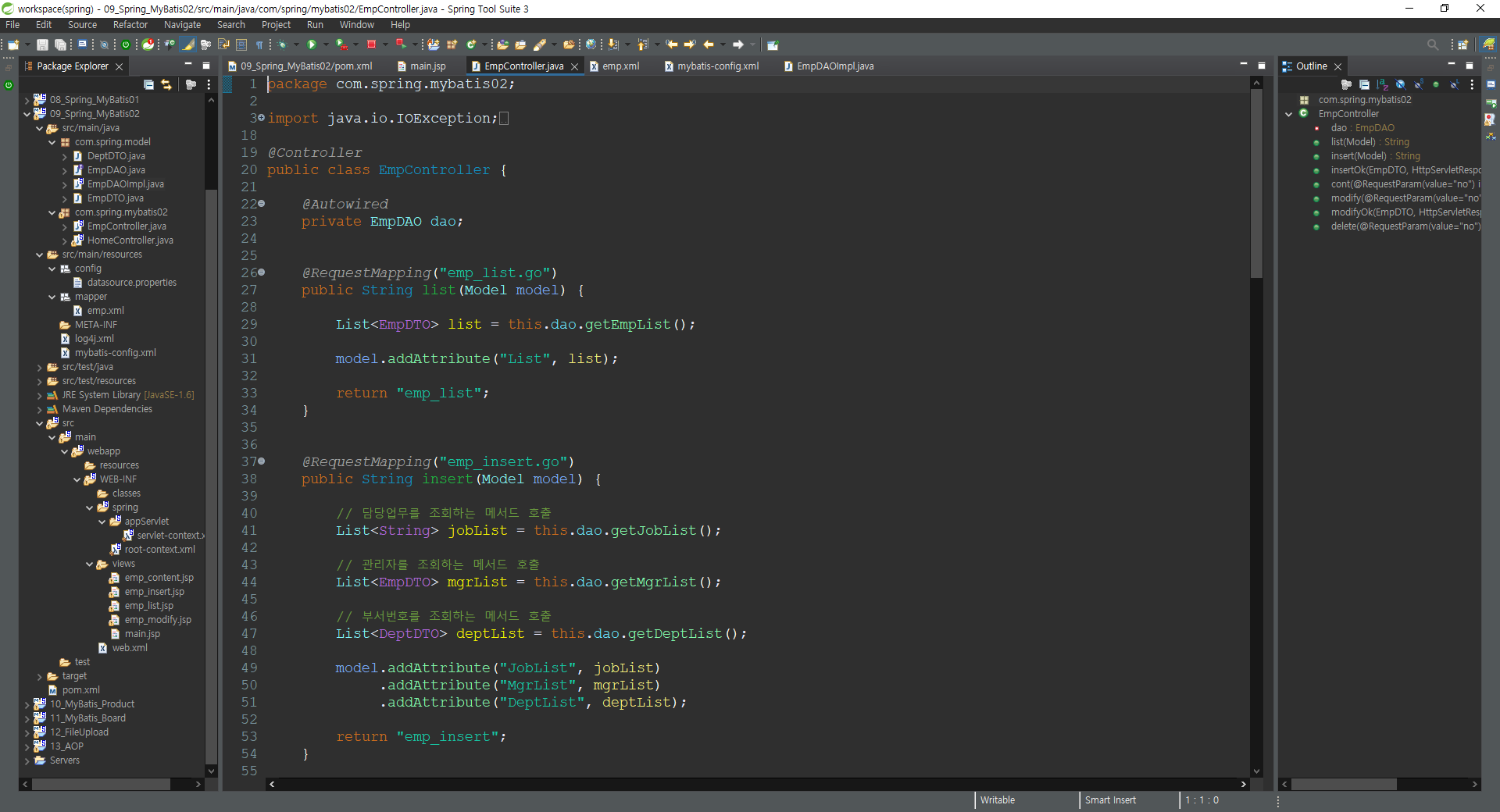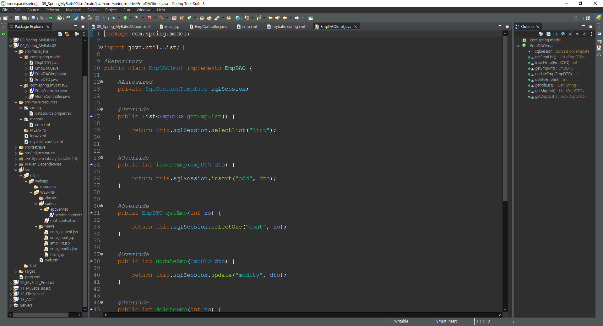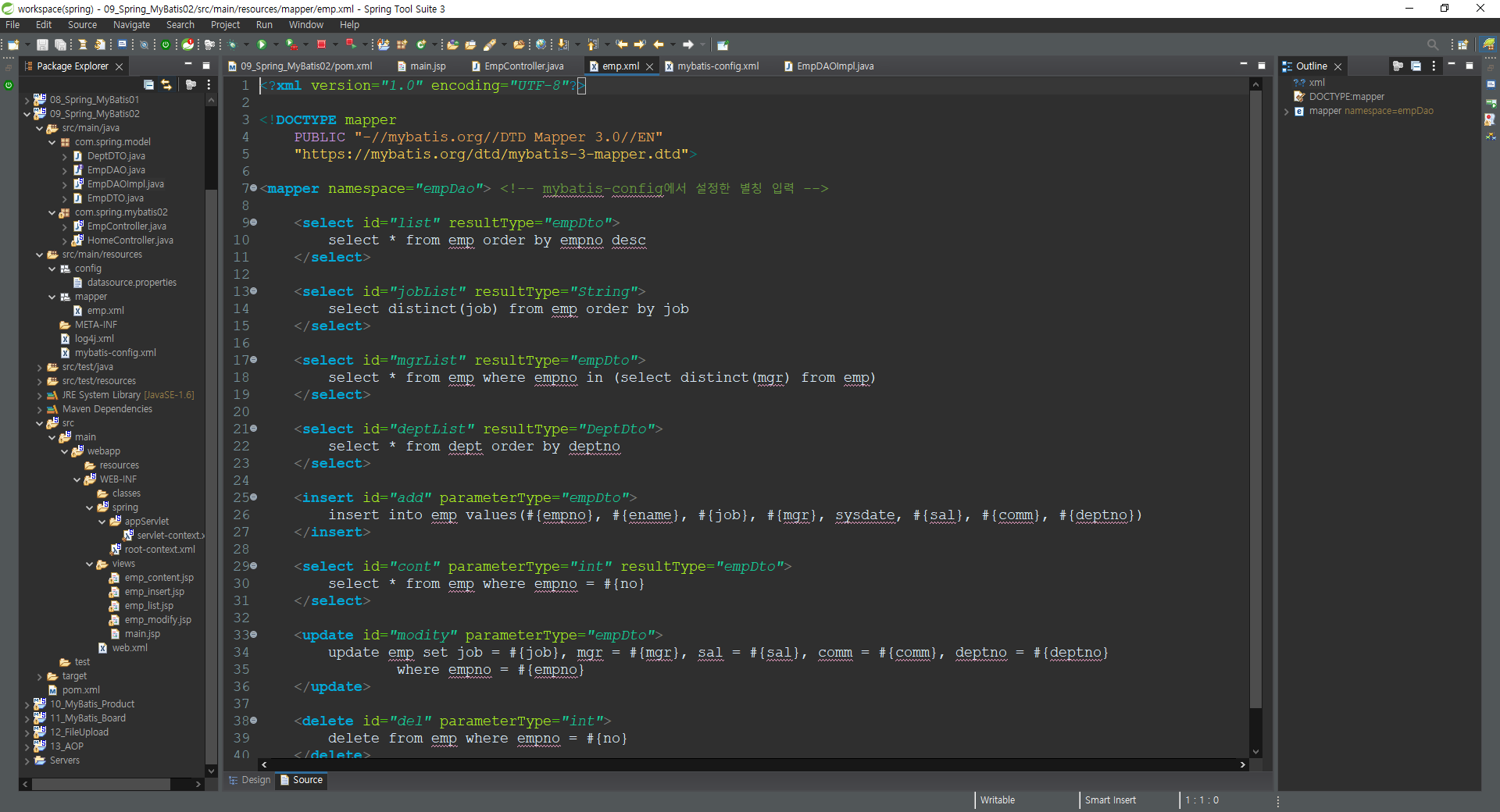 <mapper namespace="empDao"> <!-- mybatis-config에서 설정한 별칭 입력 -->