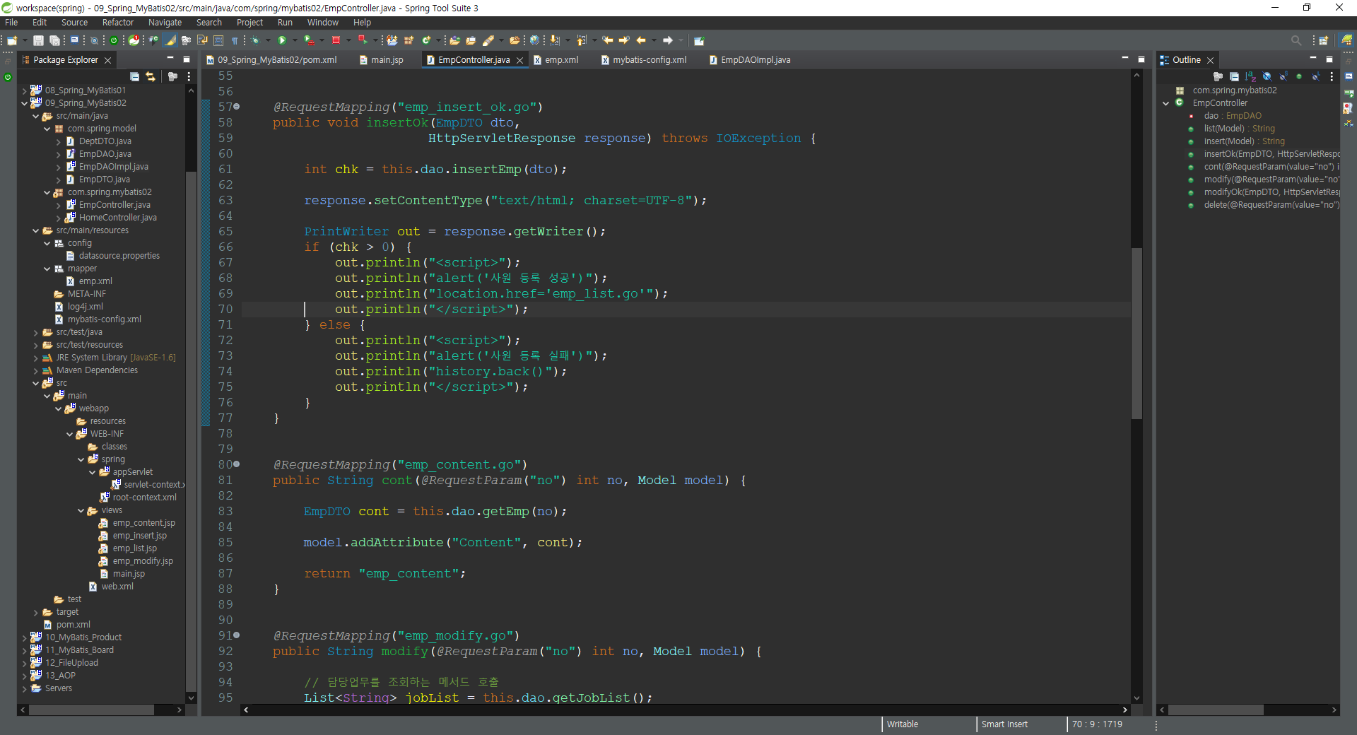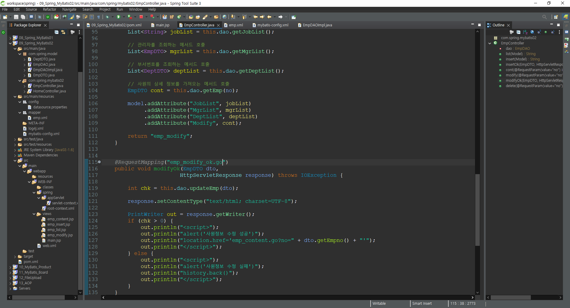 out.println("alert('사원정보 수정 성공')");