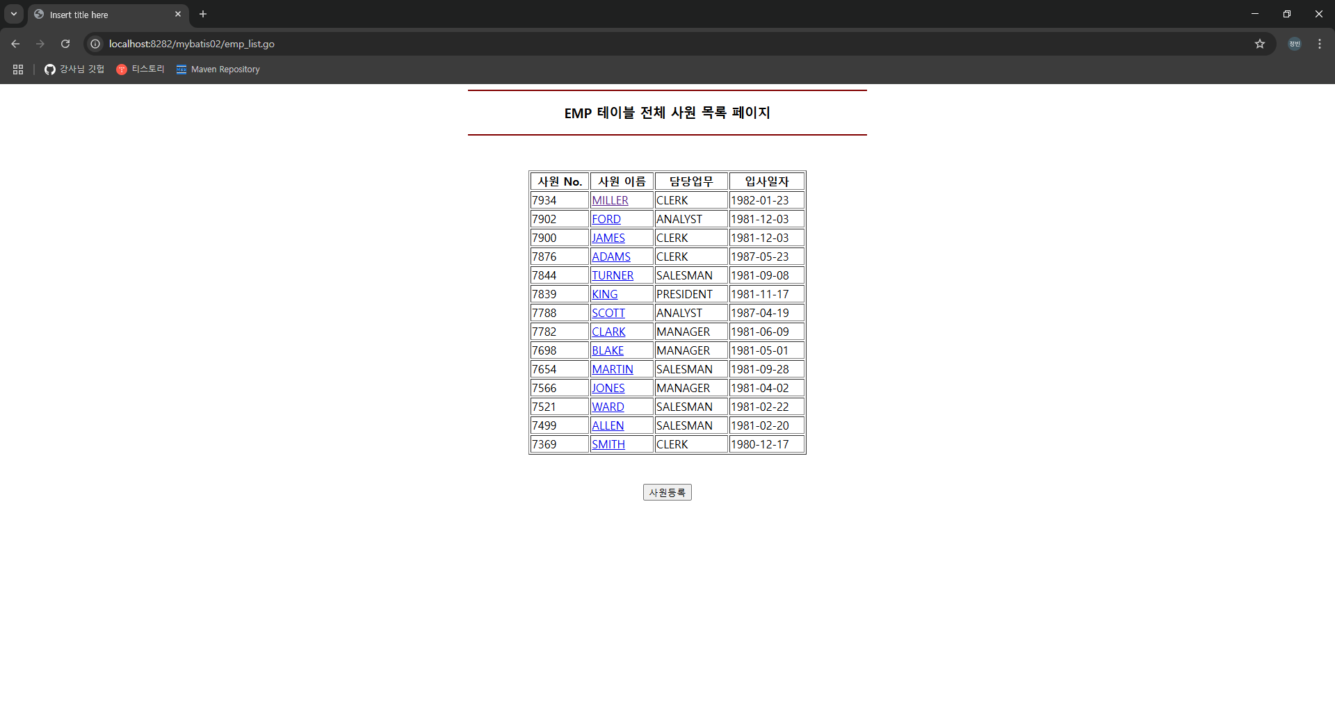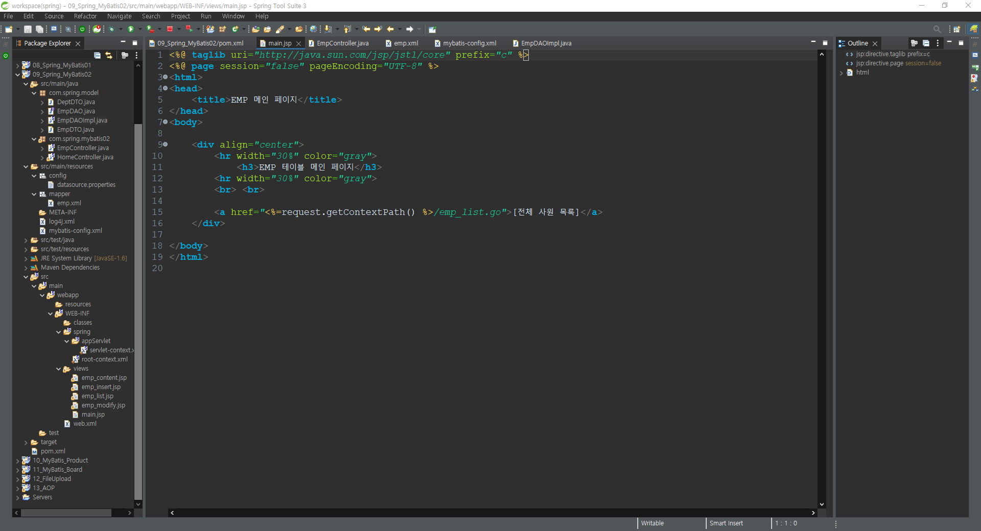<h3>EMP 테이블 메인 페이지</h3>