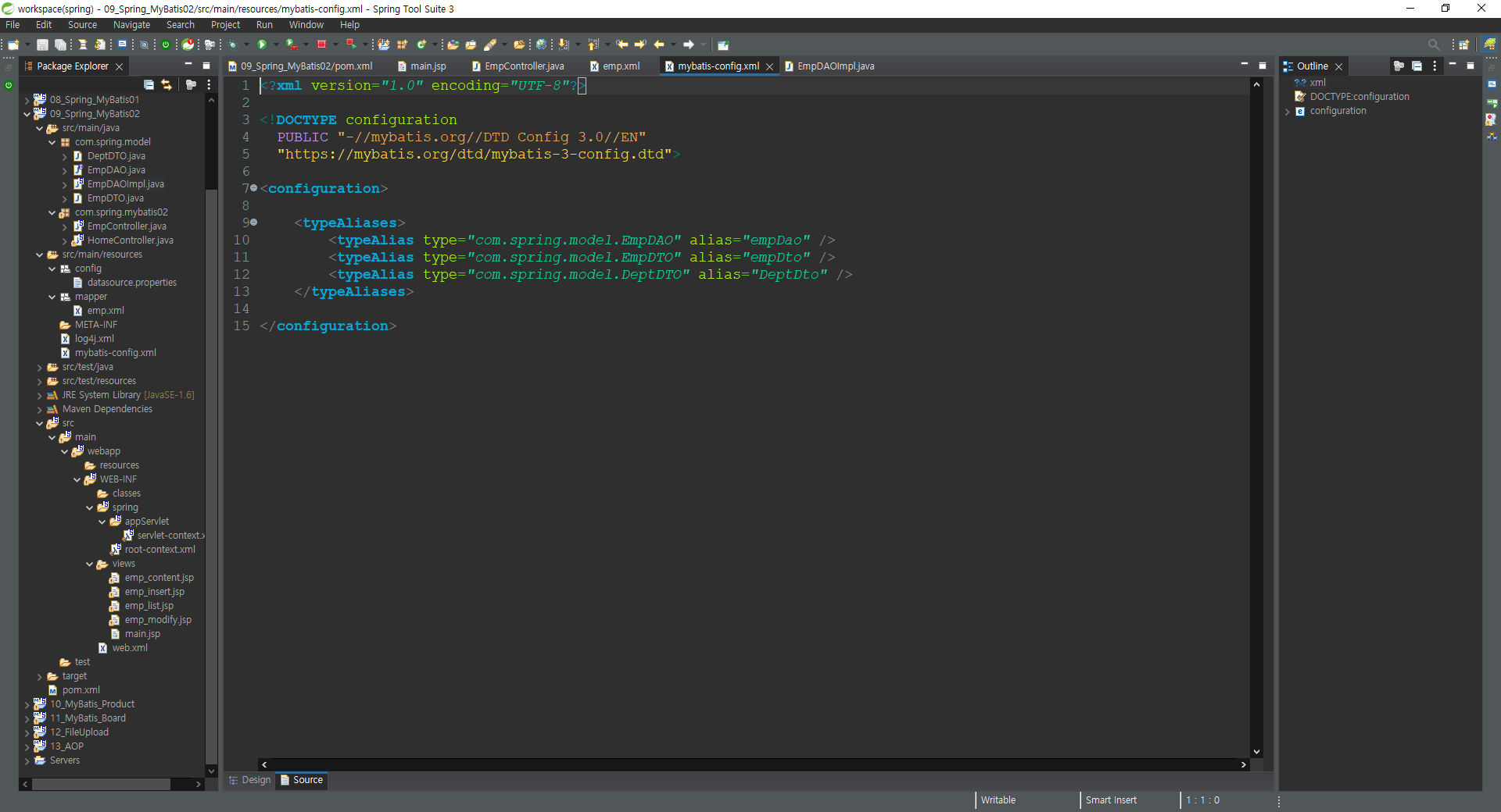 <typeAlias type="com.spring.model.EmpDTO" alias="empDto" />