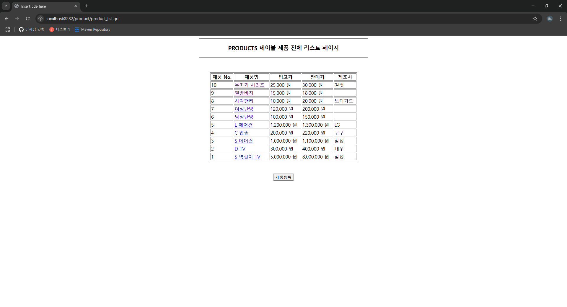 <h3>PRODUCTS 테이블 제품 전체 리스트 페이지</h3>