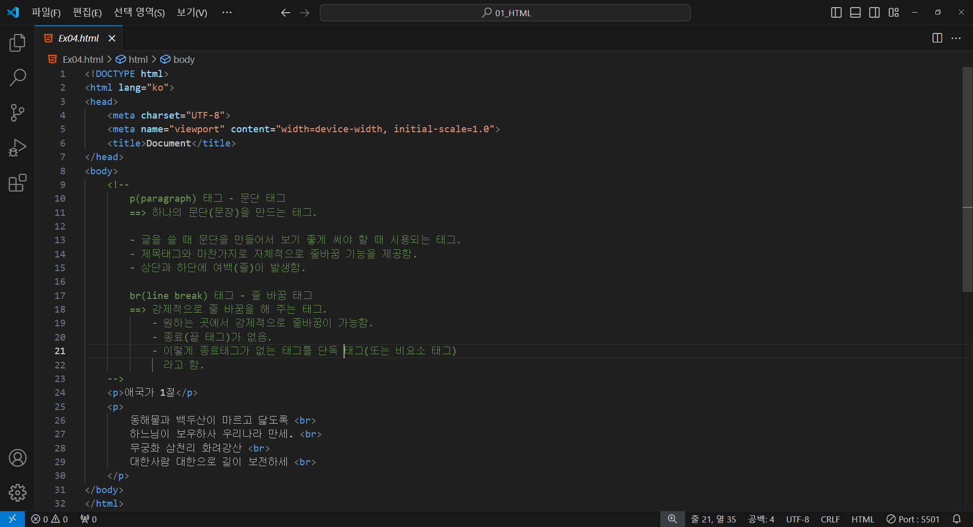 ==> 강제적으로 줄 바꿈을 해 주는 태그.