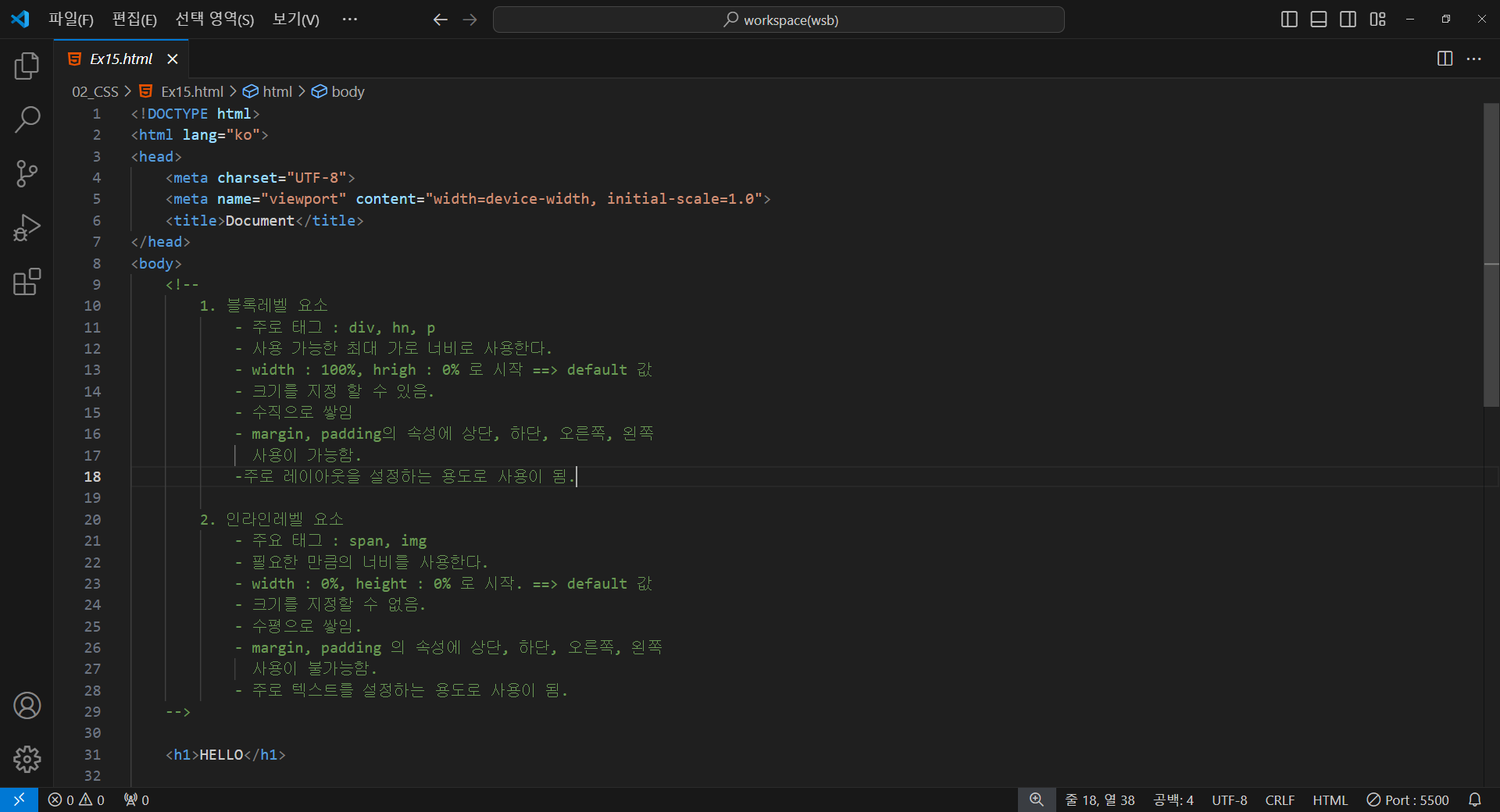 -주로 레이아웃을 설정하는 용도로 사용이 됨.
