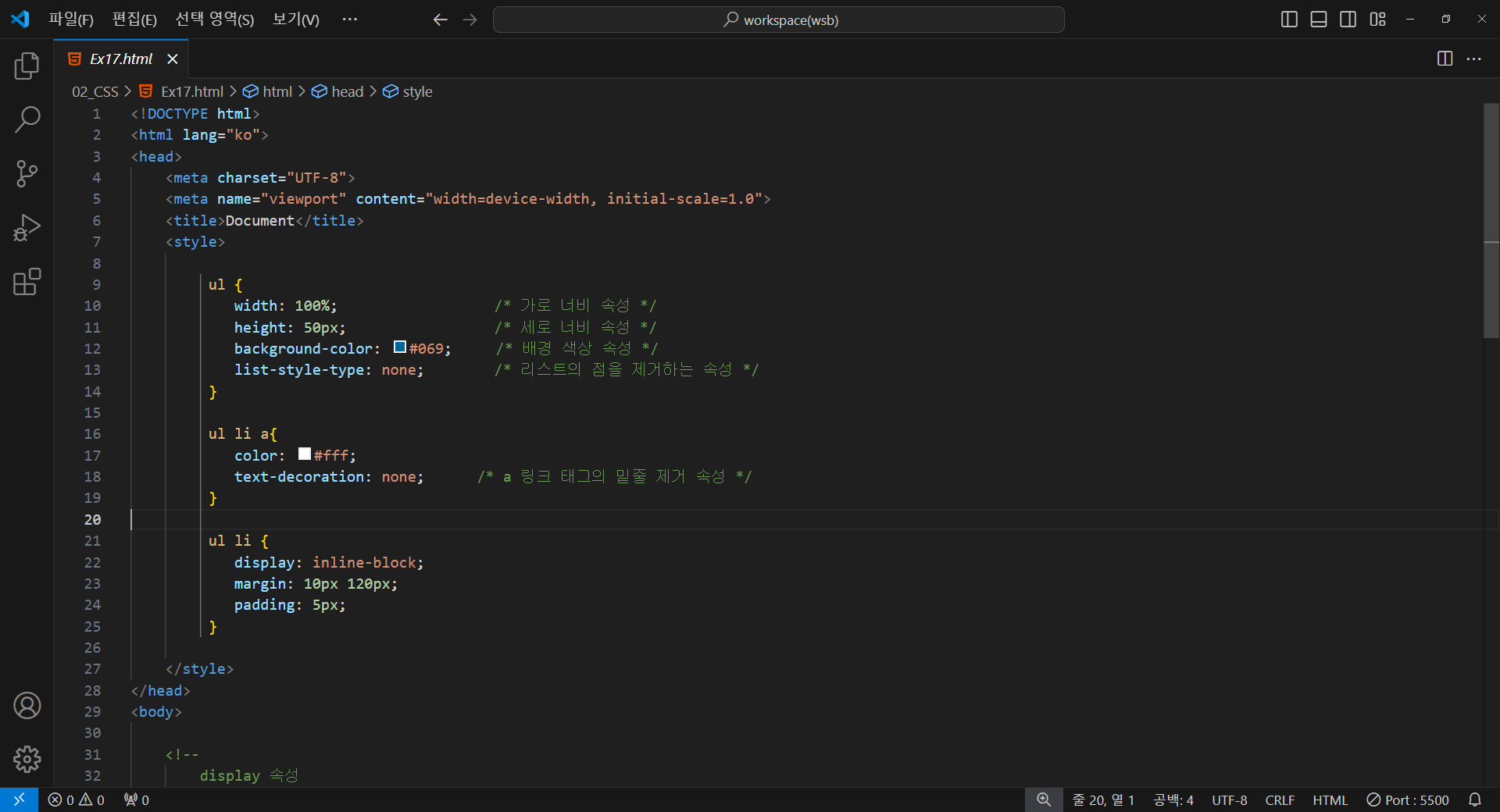 list-style-type: none; /* 리스트의 점을 제거하는 속성 */