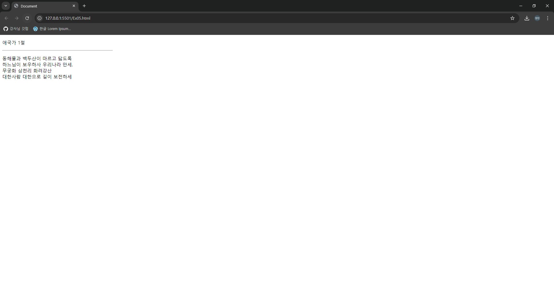 동해물과 백두산이 마르고 닳도록 <br>