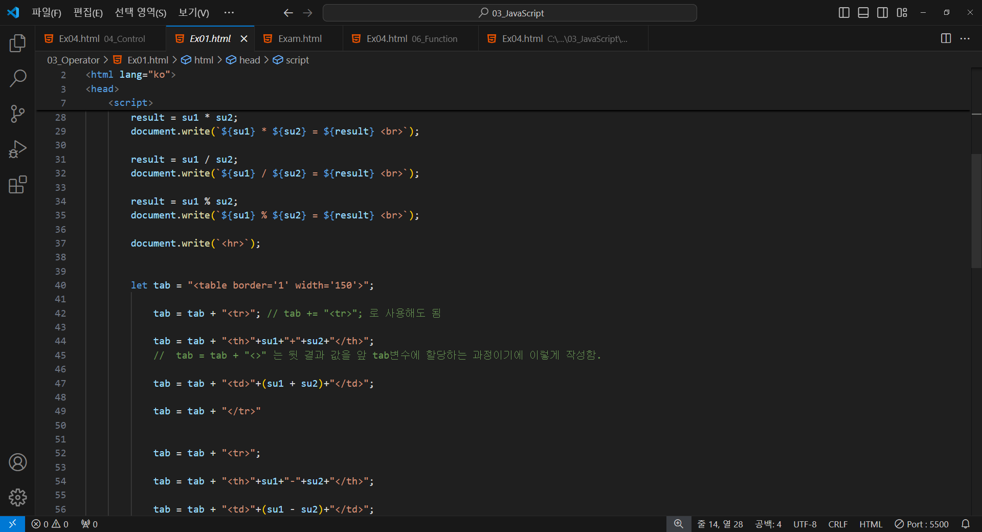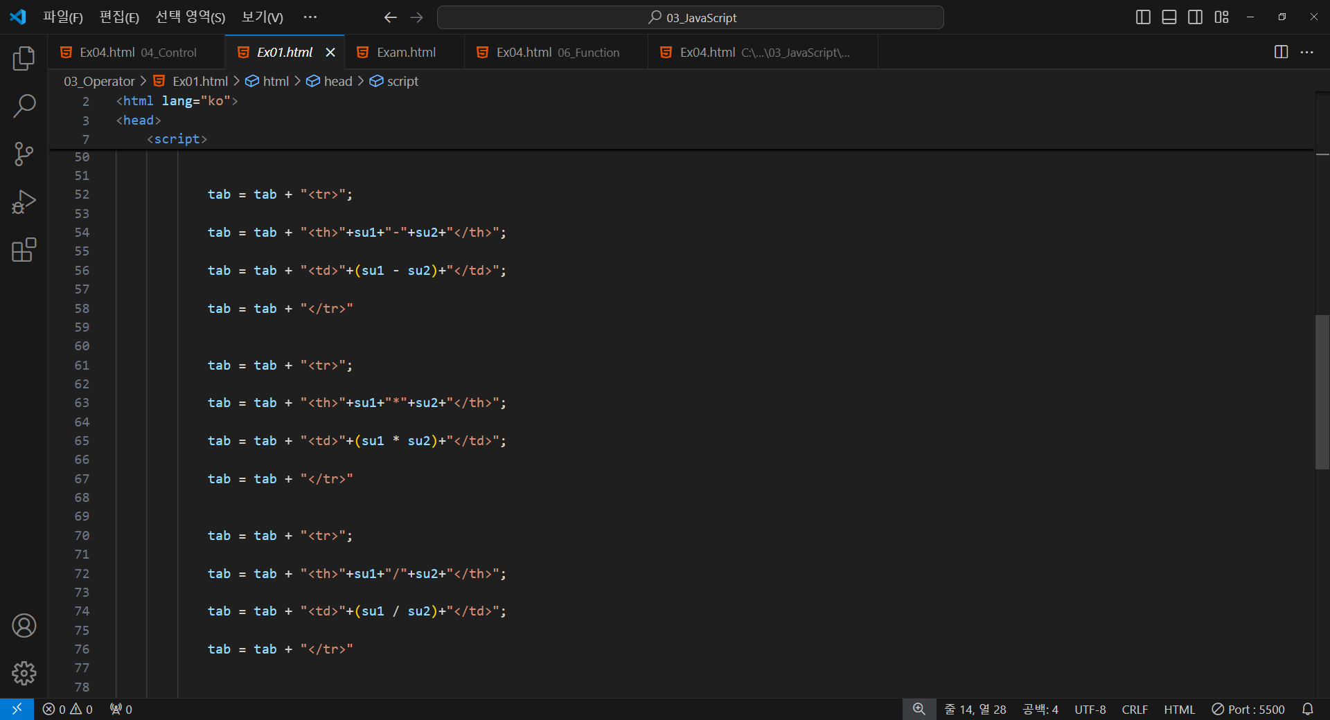 tab = tab + "<tr>"; // tab += "<tr>"; 로 사용해도 됨