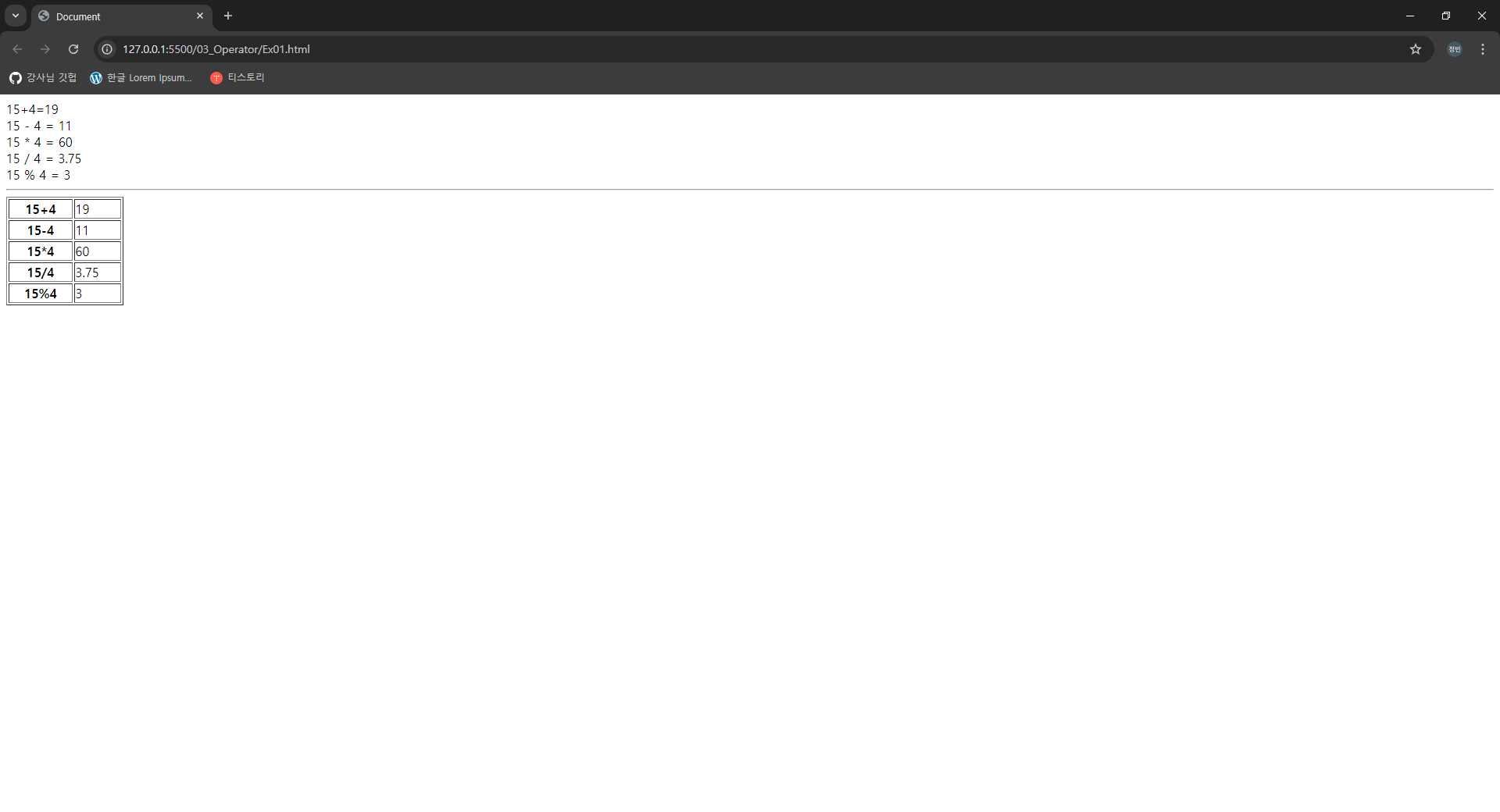 document.write(`${su1} % ${su2} = ${result} <br>`);