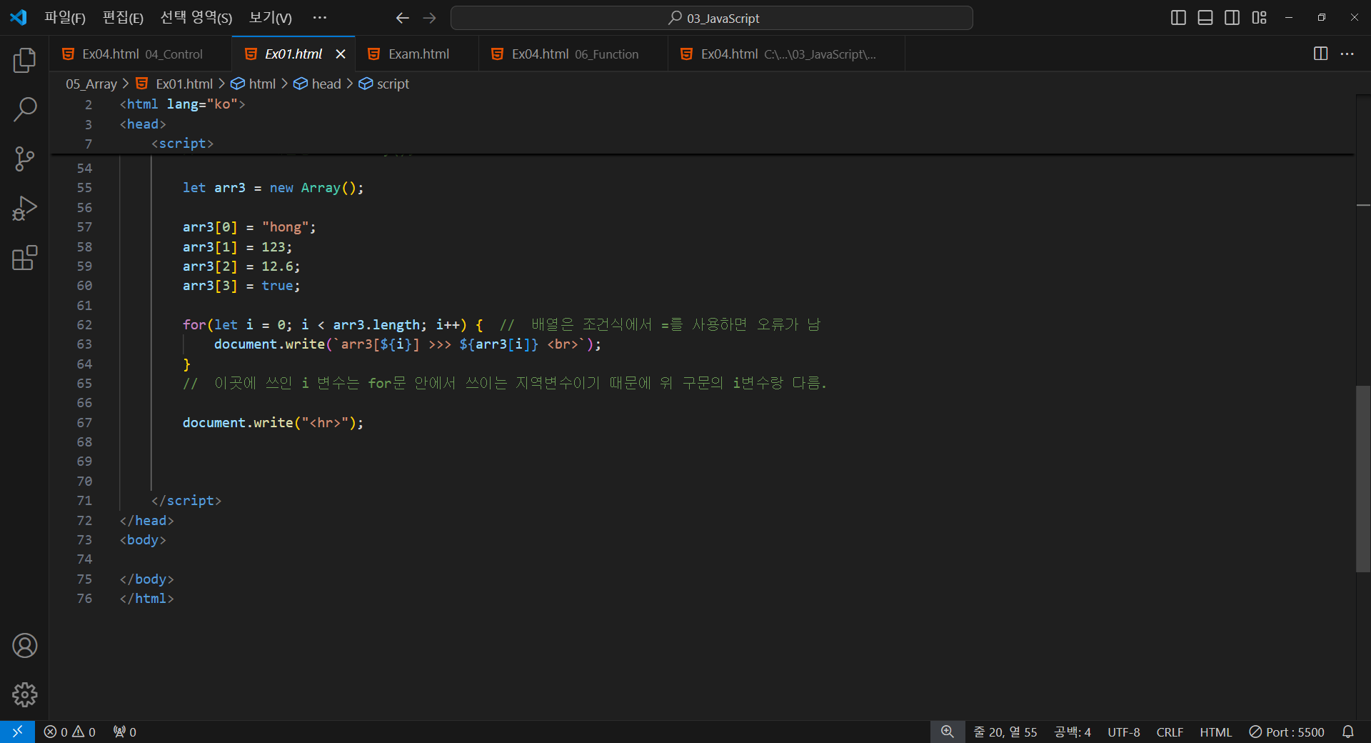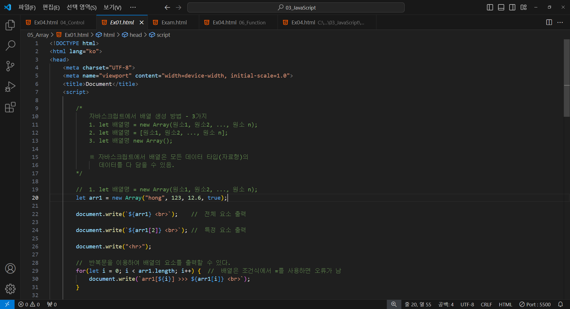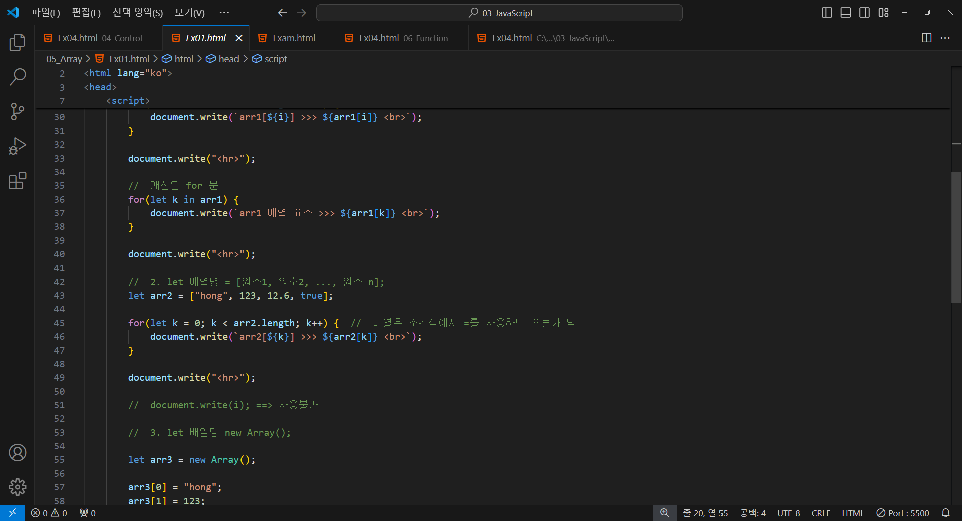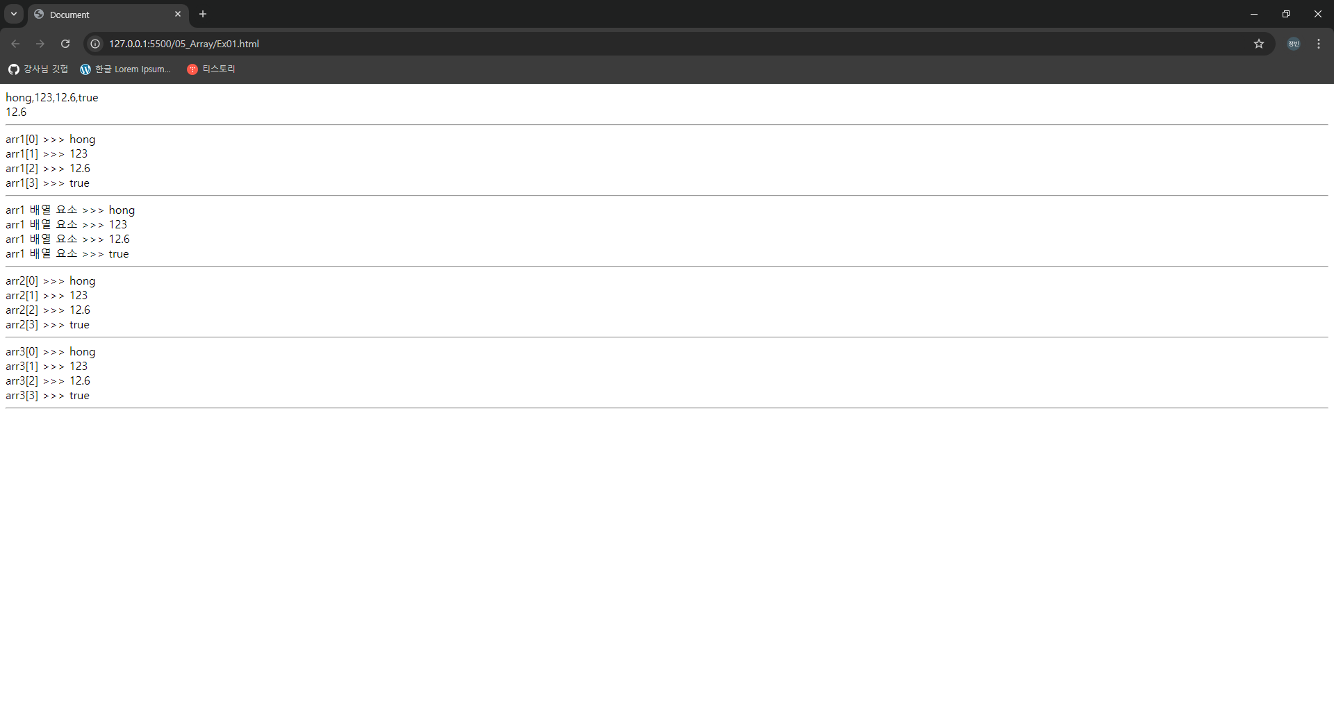 document.write(`arr1 배열 요소 >>> ${arr1[k]} <br>`);